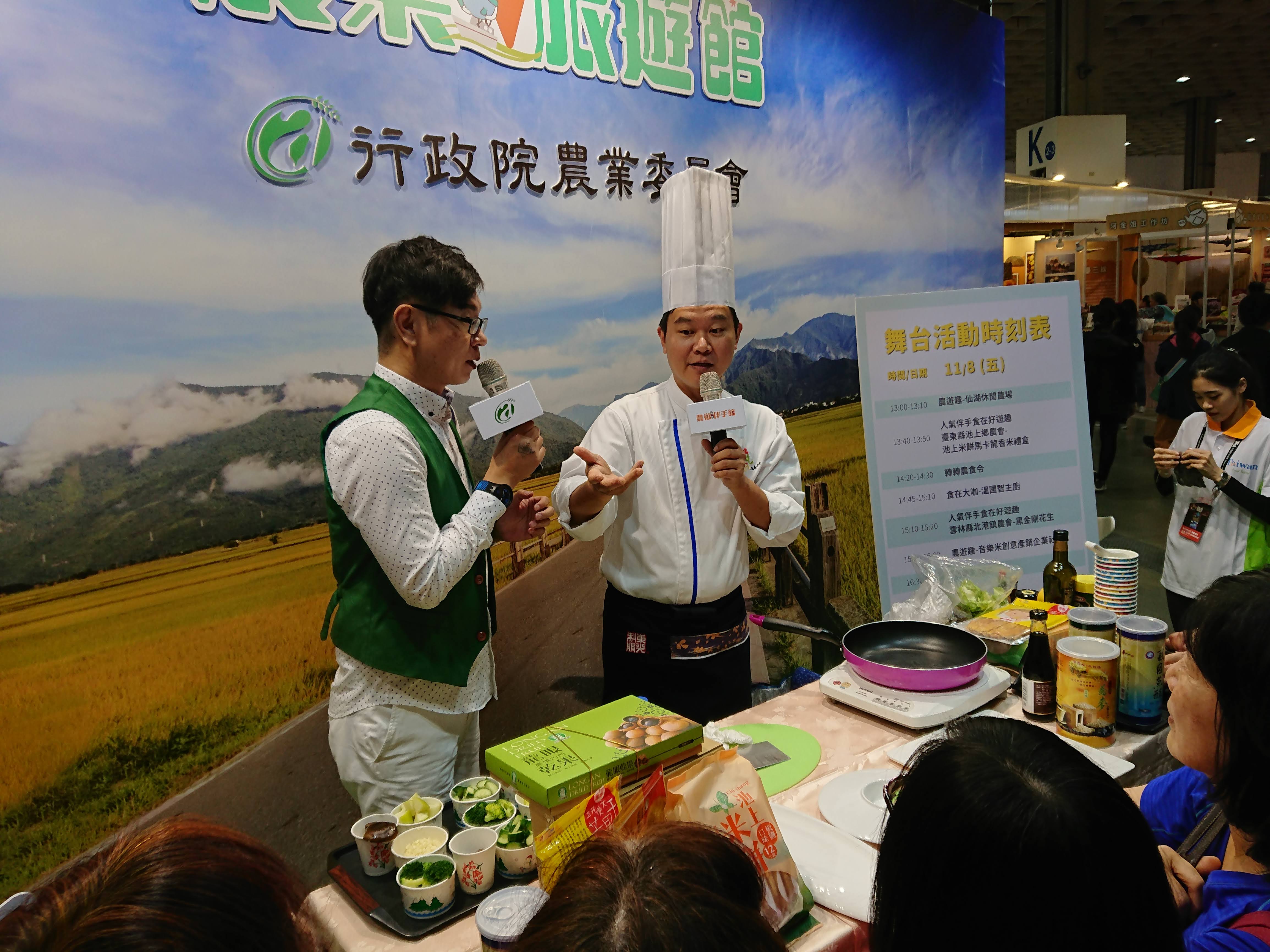 今年特別以「水產、花卉、在地食材」為主題,特別邀請到名廚溫國智、黃寶元及知名旅遊部落客肉魯現場站台,以名廚、達人身分現身說法,和民眾一起進行一場台灣農村之旅,除了可體驗豐富多元的台灣農遊伴手品外,期望留給民眾到農村旅遊必買伴手的深刻印象。今年館內規劃有「農遊美WAY」、「滿額轉好康」、「1元驚喜Go」、「人氣伴手展售區」等精彩活動,最驚喜的是,只要民眾到台灣農遊館或農遊伴手館消費滿1千元,即有機會任選一樣農遊伴手館近50樣伴手商品,以1元價格帶回家;另外4天展期每天還都會送出一份價值7千元的幸運大獎;豐富精彩活動等您來感受,誠摯邀請國人前往參觀選購。