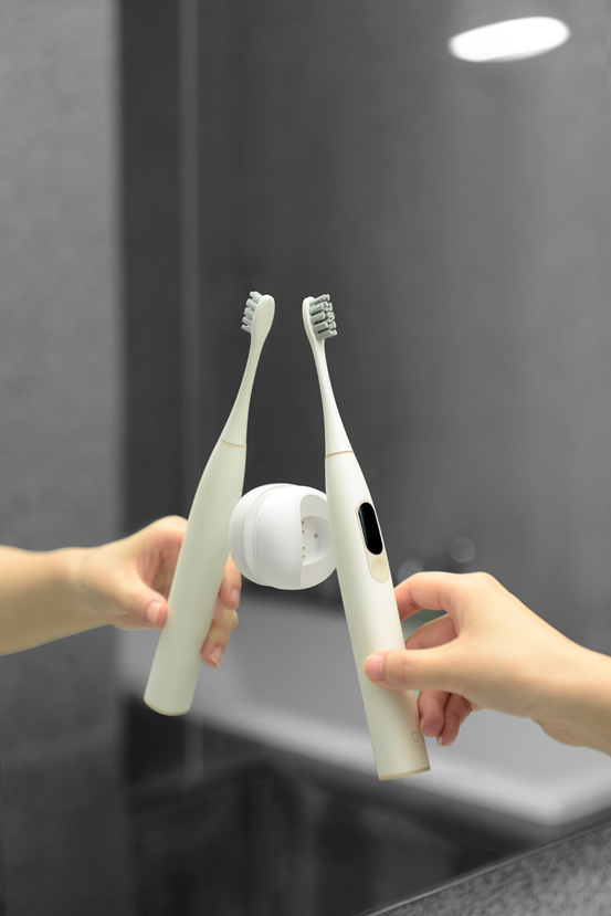 榮獲日本good design award大獎的 Oclean X ,在外型上走簡約質感路線,首創彩色觸控螢幕,看得見的淨白數據,非常方便可以記錄平常潔牙的狀況。搭配懸浮磁吸收納壁掛架與隱藏式充電座,二合一貼心設計,不僅預防潮濕問題,更節省許多空間。
