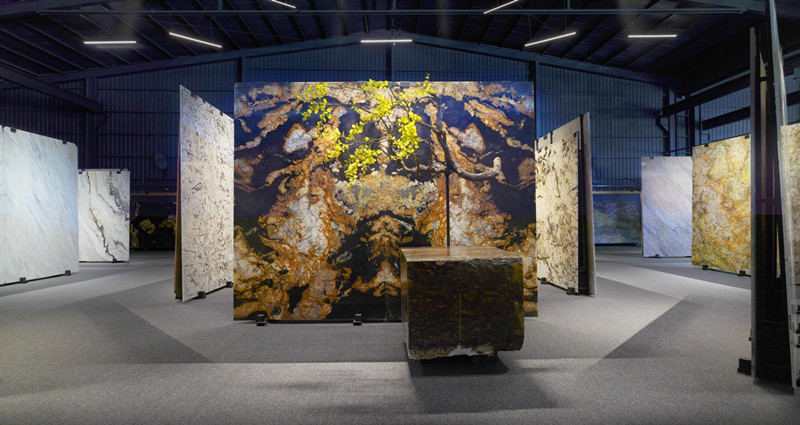 博物館分成三大區塊,讓顧客能專心欣賞石材的紋理而不被打擾。站在這寬敞的場域裡,儘管天氣微熱,那一片片壯麗的石材自然散發了清涼體感,有如身處國家公園般,得到片刻舒適愜意。「要找尋這些石材得費盡心力,為了遍尋獨一無二的美麗石材,我曾奮不顧身的飛去巴西,坐了38小時才抵達當地,不過礦場地幅很廣,還得搭直升機花兩天才能看完,哇,真的很辛苦。」陳博崑苦笑說。