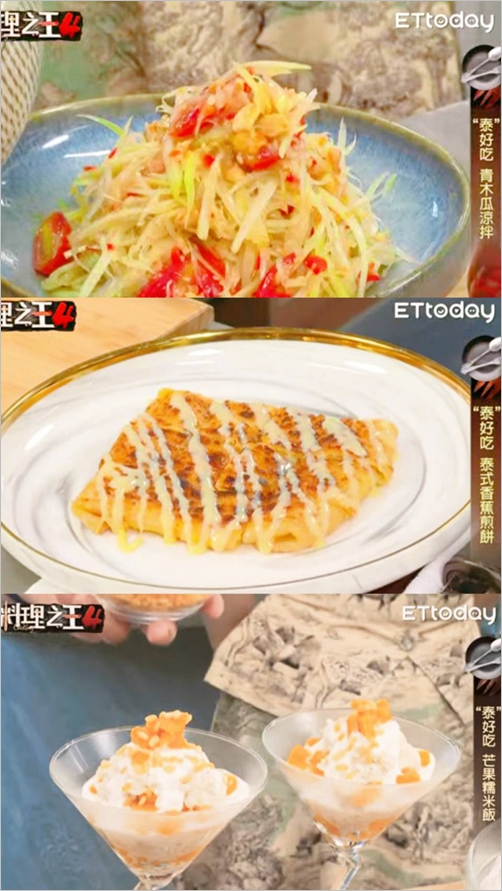 這次的料理秀呈現了三道道地的泰式料理,包括「泰式涼拌青木瓜」、「泰式香蕉煎餅」和「芒果糯米飯」。這些料理充滿了酸酸辣辣的香甜滋味,讓人回味無窮,彷彿初戀的感覺。