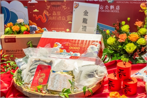 圓山素有龍宮之稱,金龍許願池更是百年古蹟,在嶄新的龍年中,對國運昌隆的殷切期盼,藉由魚躍龍門的吉祥意涵,期望臺灣漁業的好運興旺龍總來,本次圓山林育生董事長更以行動支持國產水產品,現場由國廚運用金龍禮盒呈現14道在地好料理,在圓山通通點得到,請消費者把握機會到圓山享用開運年菜料理。想在家大顯身手的消費者,也歡迎於「鱻魚購」及「買魚去」等電商平台線上選購,購買金龍禮盒等水產品,還有機會可以抽到圓山大飯店的高級客房住宿券、松鶴自助餐券、密道探訪券、漁業設計月曆等大獎。