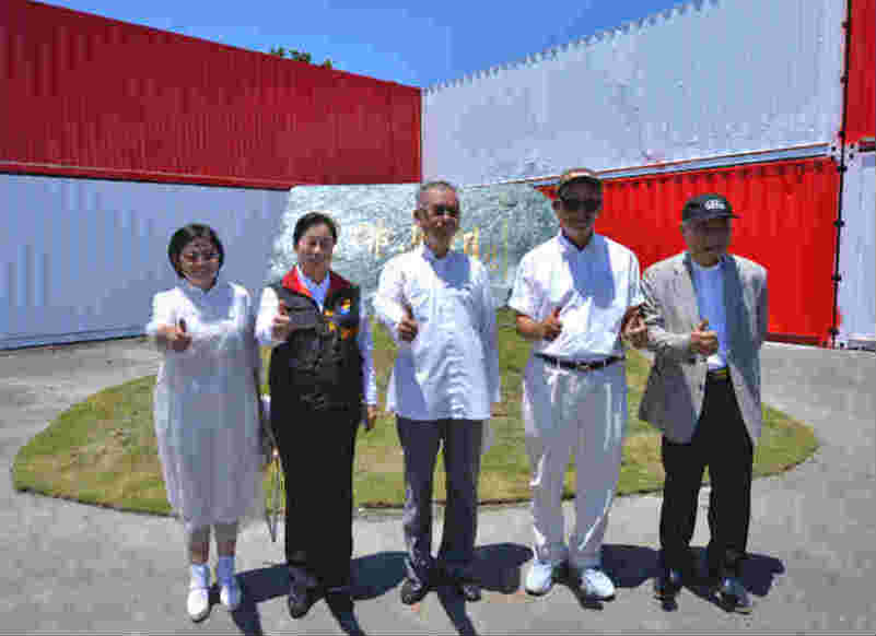 圖:右起前統一集團林蒼生總裁、台開集團邱復生董事長、 世紀禪師洪啟嵩老師、花蓮縣徐榛蔚縣長、台灣覺性地球協會理事長龔玲慧在大佛取得金氏認證活動合影