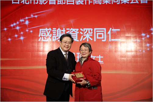 會中更特別為服務影音公會近40年,即將於明年2月退休的資深同仁-陳鳳珠進行表揚;甚至安排驚喜橋段,為影視前輩劉仲堯夫妻慶祝50年結婚紀念日,準備了雙層大蛋糕,播放結婚進行曲,場面十足感人。