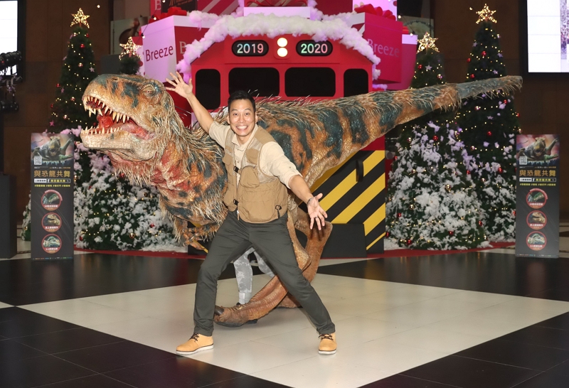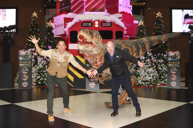 而活動大使艾力克斯則笑說:「之前有看過恐龍秀,但第一次如此近距離站在牠身旁,感覺自己更加的渺小,很緊張耶!而我最愛翼龍,牠是唯一會飛的恐龍,獨一無二超酷的,因為過往曾想當機師翱翔天空,後來卻進了演藝圈,但我心中仍嚮往著有雙翅膀自在地遨遊天空,艾力克斯並笑說之前寶貝兒子看了恐龍秀影片,竟天真跟我要求:可否養一隻恐龍,讓我超傻眼的!
