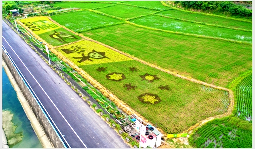 位於臺北市北投區的關渡平原擁有數百公頃的水稻田,已有超過百年的水稻田種植歷史,不但保有傳統水稻文化,更具有豐富的水稻生態景色,是在快速都市化的臺北盆地中難得擁有的大片綠地。為了活化都市農地,營造鄉村景觀,指導單位臺北市政府產業發展局及主辦單位台北市七星農田水利研究發展基金會,今年首次於豐年段土地(北投區中央北路二段257巷)打造小型亮點藝術「關渡平原稻田彩繪」,希望透過美麗稻田彩繪進而提升民眾對台灣農業、生態環境的關懷,更特別邀請苑裡鎮農會協同合作,運用白、黃、紫、綠水稻編織為可愛活潑的農夫、稻穗以及象徵溼地生態的候鳥,傳遞北投區關渡平原農業、人文景觀及生態。