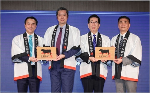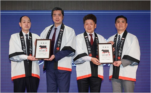 圖 : 由左至右縣產和牛品牌協議會 市村猛/御頂國際股份有限公司 孫正強 董事長/縣產和牛品牌協議會 松本豐/御頂國際股份有限公司 李日東 副董事長。