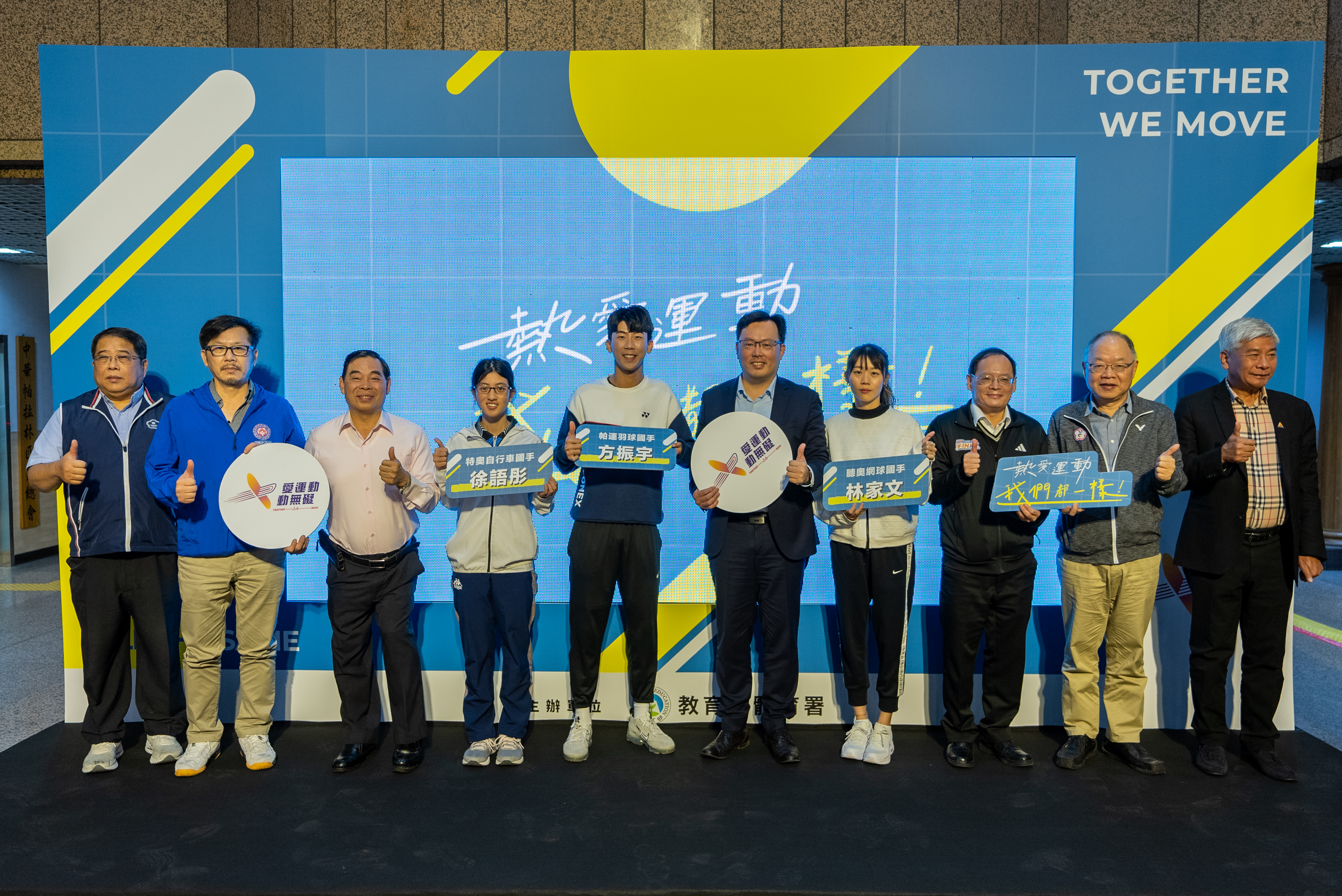 體育署與選手們號召民眾,一同加入「愛運動 動無礙」的行列。更多身心障礙運動的相關資訊,歡迎大家上網搜尋「i運動」(https://isports.sa.gov.tw)或加入「愛運動動無礙:身心障礙運動資源分享區」FB社團,讓我們都一樣熱愛運動!