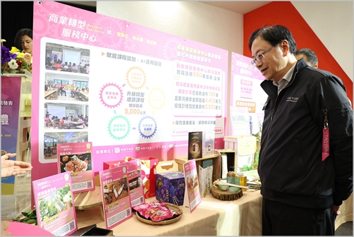 圖:桃園市張善政市長及桃園市政府經濟發展局張誠局長與桃園市商業轉型服務中心亮點業者。