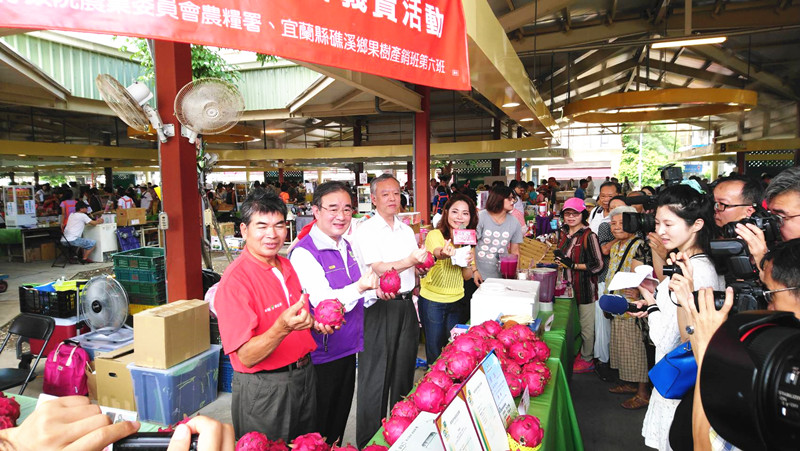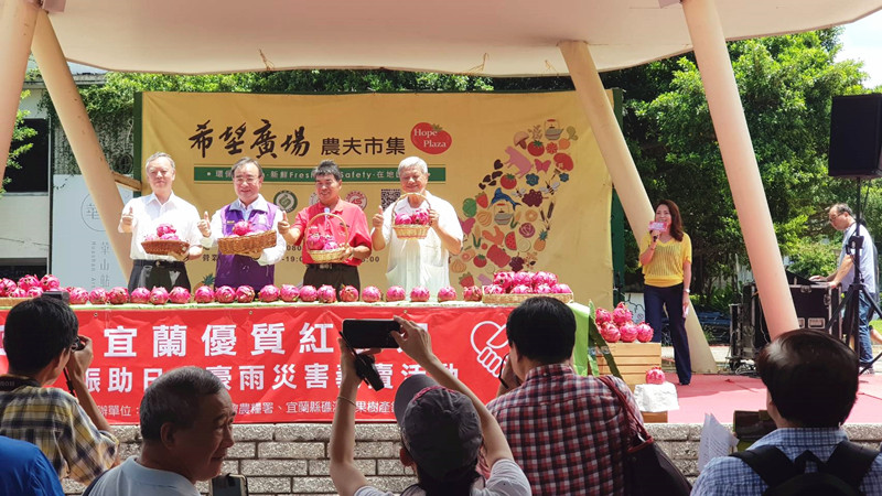 宜蘭農友(7/21)日發起愛心義賣活動,在臺北希望廣場親自義賣所生產的優質火龍果,並將所得全數捐贈日本7月5日豪雨災害之災民。活動首先由農委會農糧署長胡忠一致詞感謝宜蘭農友悲天憫人、人溺己溺的跨國義舉,再由原青果運銷合作社聯合社經理李念宜報告本次義賣活動的原由,最後日本臺灣交流協會副代表橫田光弘,代表日本政府感謝我國,並表示希望兩國攜手合作,持續合作攜手,在各方面加深臺日合作關係。