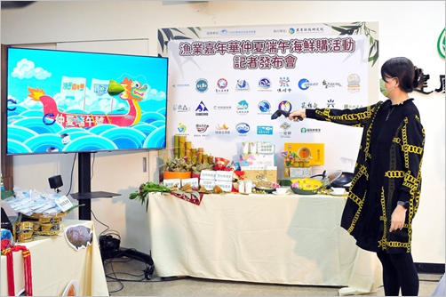 漁業署代理署長范美玲表示,這是她代理署長後參與的首場記者會,母親節及端午佳節即將到來,很開心看到產業團體推出應景的母親節禮盒及海味粽,尤其還有漁會及農會的合作,大家都一起努力,為水產品開創新價值。
